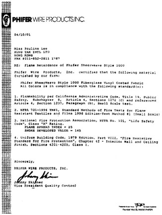 Flame Retardant Treatment 防火加工 |