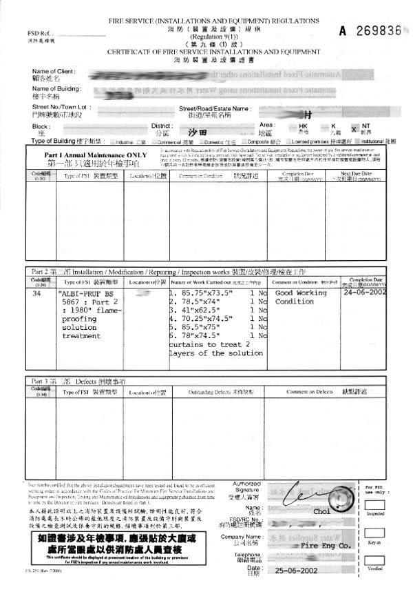 防火証書樣本 |
